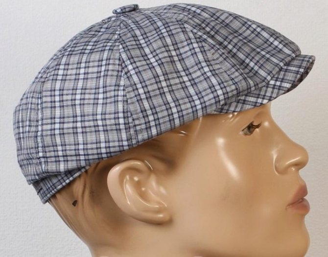 Приближена по фасону к первоначальной британской модели. Кепку сшивают из восьми тканевых заготовок, а также козырька с жесткой вставкой. Верхняя часть сдвигается вперед, закрывая козырек.