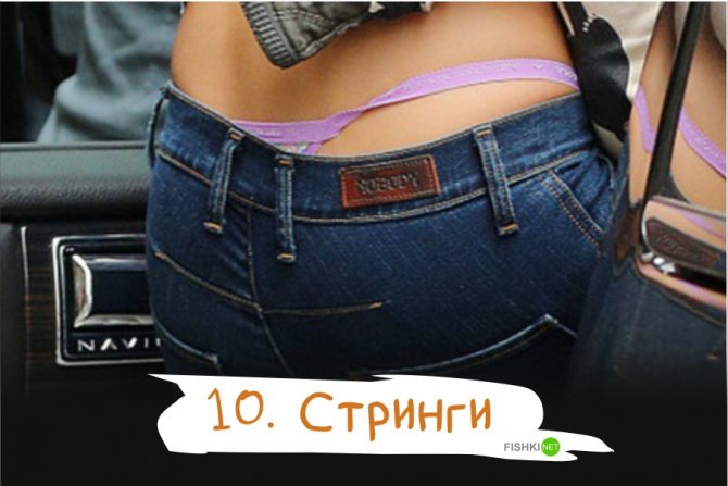 - G- string. У них заниженная посадка, а под поясницей есть кусочек ткани в виде треугольника.
