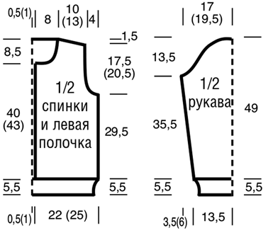 Чтобы учесть все эти моменты, нужно перед началом вязания нарисовать или найти подходящую выкройку, например, такую:
