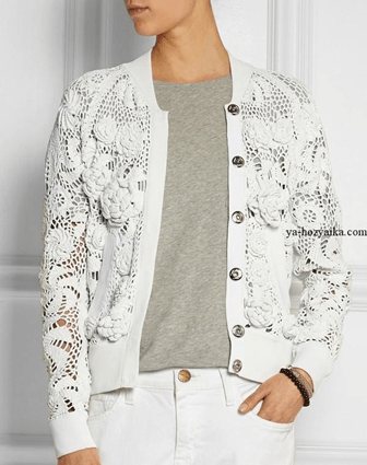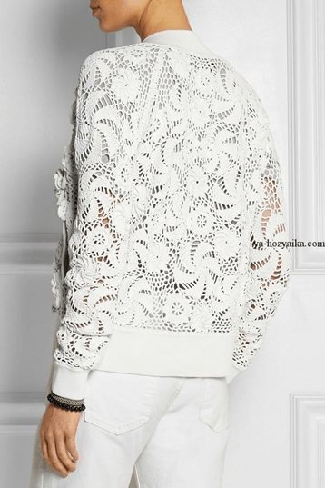 Нежным, воздушным получается тонкий бомбер, выполненный из мотивов. Соединение элементов делает образ оригинальным и неповторимым.