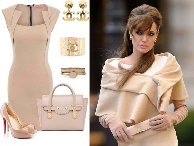 Бежевые наряды предъявляют довольно строгие требования к цвету лица. Кожа должна иметь идеально ровный тон. При создании вечернего образа можно подчеркнуть губы яркой помадой или выделить глаза.