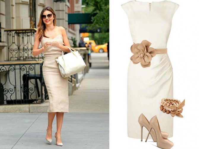 - Для коктейльной вечеринки — попробуйте бежевое платье, если хотите выделиться среди других. Почему? Обычно для таких вечеринок модницы предпочитают платья в более ярких и насыщенных цветах и в результате, все одинаково яркие)) Поэтому именно нейтральный бежевый способен выделить вас на ярком фоне. Золотистые туфли составят прекрасную компанию бежевому платью.
