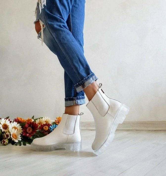 - Достаточно маркие. Если ты не согласна с тем, что стиль требует жертв, то белые боты могут оказаться тебе не по душе. Во-первых, с ними нужно быть осторожнее, потому что запачкать их можно буквально всем. Во-вторых, за ними нужно хорошо ухаживать, чтобы они дольше сохраняли «товарный вид». Хорошо подумай, готова ли ты на такие жертвы. Совет: белые ботинки с черной подошвой запачкать сложнее, бери на заметку.