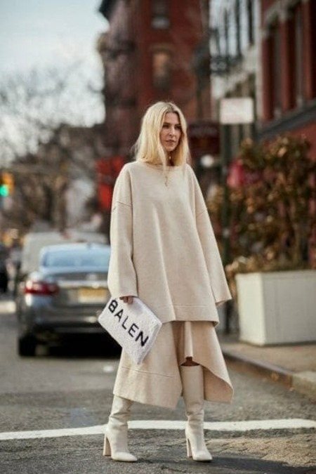Непременный лук этого года — ботинки с леггинсами или скинни, которые подчеркнут длину ног. Узкий облегающий низ дополнят объемные свитера, рубашки. Такие луки можно разбавлять модными аксессуарами: шляпой, шарфом, сумкой.
