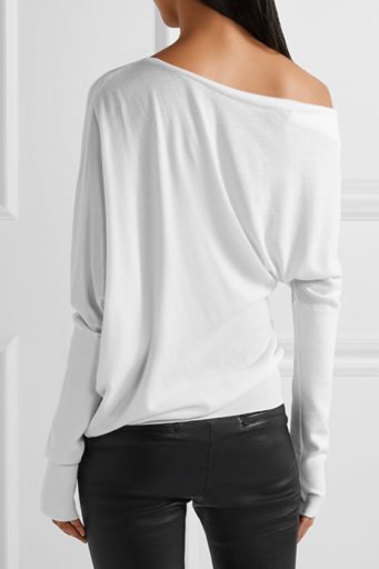- со спущенным плечом – нет ничего провокационнее и оригинальнее изделий подобного рода. Вроде бы кофточка выдержана в рамках приличий, но какой простор для мужских фантазий она создает! Спущенное плечико могут себе позволить девушки с пышной фигурой. За счет свободного кроя кофты в серединной части удается скрыть округлый живот и бока, а асимметрия вверху отвлекает внимание от дефектов и подчеркивает женственность аутфита;