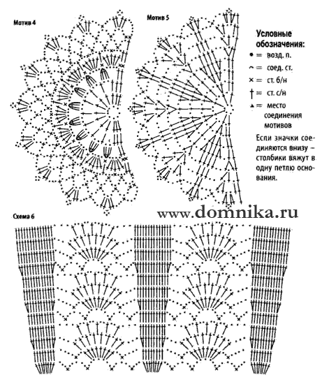 Низ кофточки и рукавов выравнивайте половинками мотивов 4 и 5.
