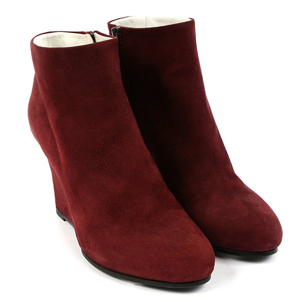 Самый изысканный вариант – это модель на шпильке. Особенно красиво будут выглядеть ботильоны из замши бордового цвета. Такую обувь можно носить с коктейльным платьем или деловым костюмом. Но в последнем случае, необходимо выбирать модель с лаконичным декором.