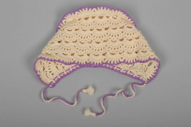 Благодаря убавкам с обеих сторон чепчика получаются выступы, закрывающие ушки ребенка.