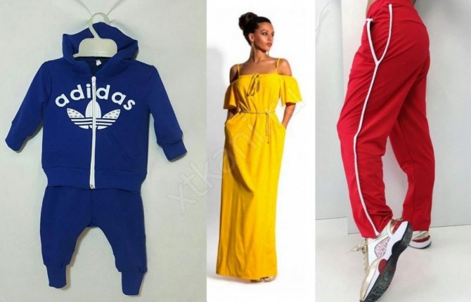 - Ткань футер двухнитка с лайкрой, дайвинг и микро-дайвинг. Детские и взрослые спортивные костюмы, водолазки, пуловеры, толстовки и т. д.