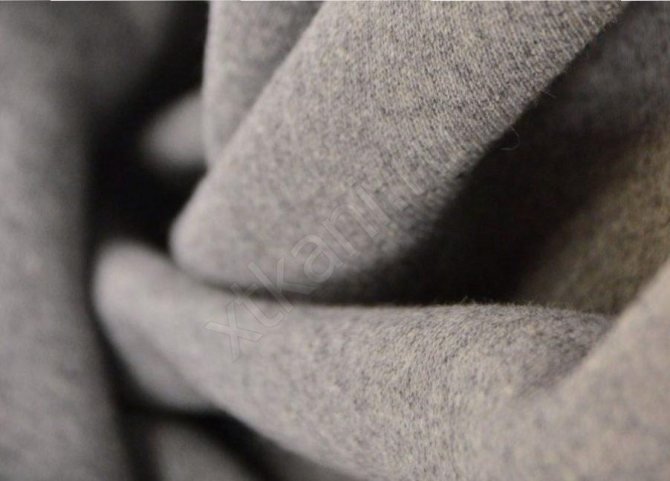 - Двунитка – футер: что за ткань, спросите вы? Это прочный, но мягкий и гладкий трикотаж. Футер-петля – с лицевой стороны гладкий, с изнанки – с махрой из множества петелек. Бывает обычный и утепленный. Производится из чистого хлопка, или смеси его с полиэстером, реже с лайкрой . Обойдется от 500 руб. за 1 метр.