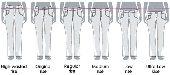 Low rise — низкая линия талии. Джинсы с такой посадкой зачастую предназначены для девушек, хотя иногда встречаются и в мужском сегменте. Такие джинсы нужно аккуратно носить и тщательно подбирать под них одежду.