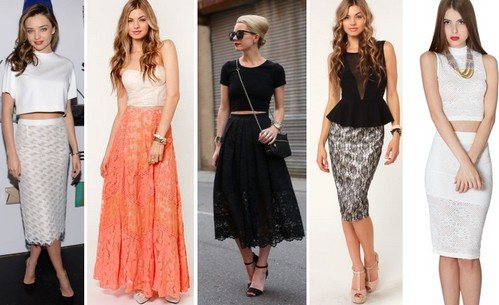 Остается актуальным вопрос, с чем носить кружевную юбку или фасон с декором по низу. Если посмотреть фото, то легко убедиться, что верх может быть практически любым.