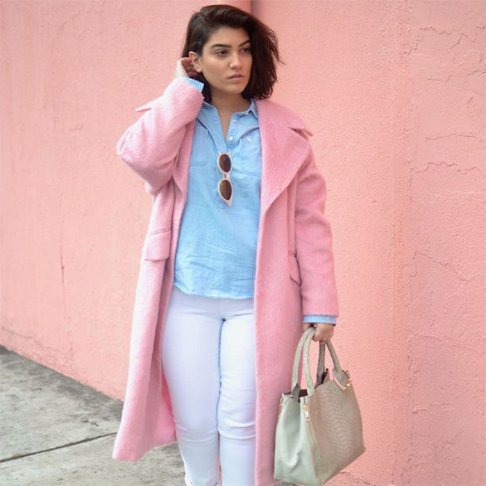 - пудровая. Пудровая палитра преобразит привычный деловой или романтический лук, делая образ нежным, женственным и элегантным. Комбинировать данный предмет желательно с контрастными черными или темно-синими элементами женского гардероба;