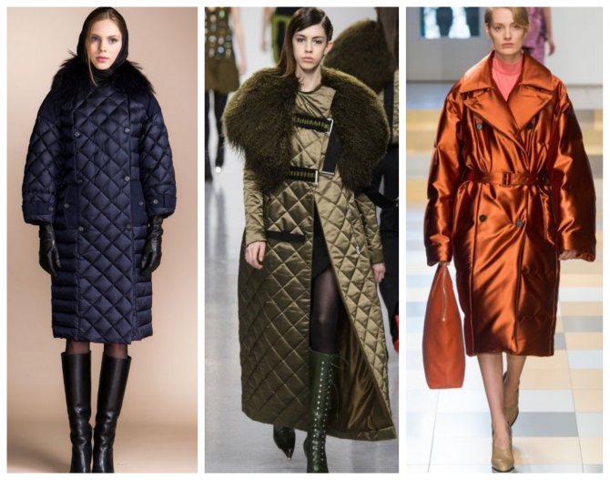 Актуальные зимние варианты теплой одежды представлены в удлинённых моделях на синтепоне. Популярными моделями являются зимнее пальто до средины щиколотки. Их дополняют всевозможными вышивками, камнями и контрастными вставками. А также спросом пользуются модели кокон и oversize.