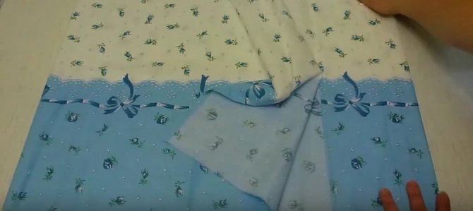 Затем раскладываем заготовку чехла на столе и складываем деталь пополам изнаночной стороной внутрь и внутрь же подворачиваем запах. Ещё раз проверяем длину наволочки: она должна составлять длину подушки +3-5 см, остальное убираем в запах.