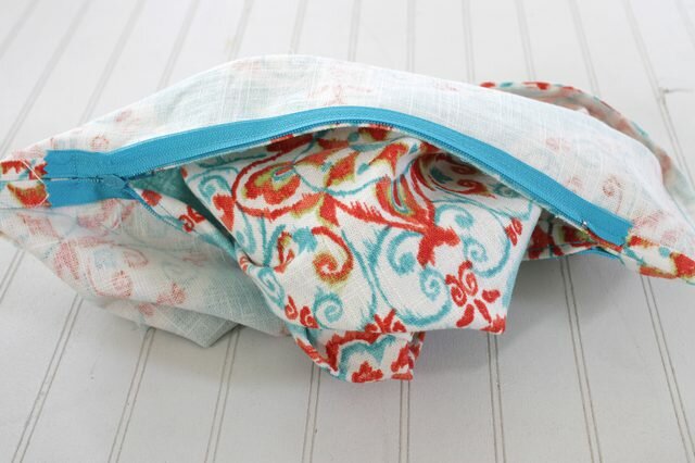 - Вывернуть изделие на правую сторону, прогладить, одеть на подушку.