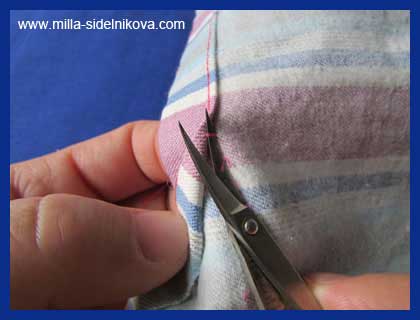 С одной из сторон строчки, со стороны верхней нитки или нижней, с которой удобнее, тем же ножом – вспарывателем