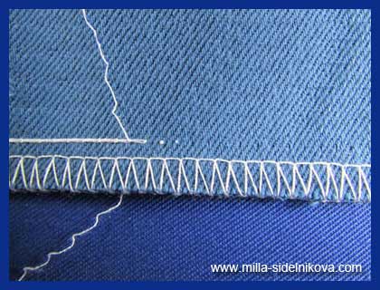 Трехниточная оверлочная строчка выглядит одинаково с обеих сторон, с лицевой и изнаночной.