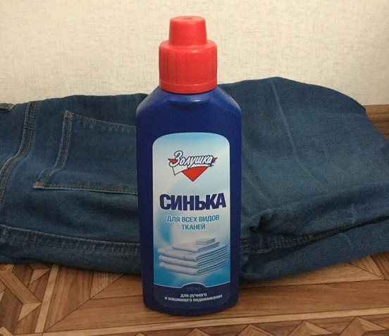 Синька — самое доступное средство, подходящее для всех видов ткани. Она безвредна для кожи и проста в применении.