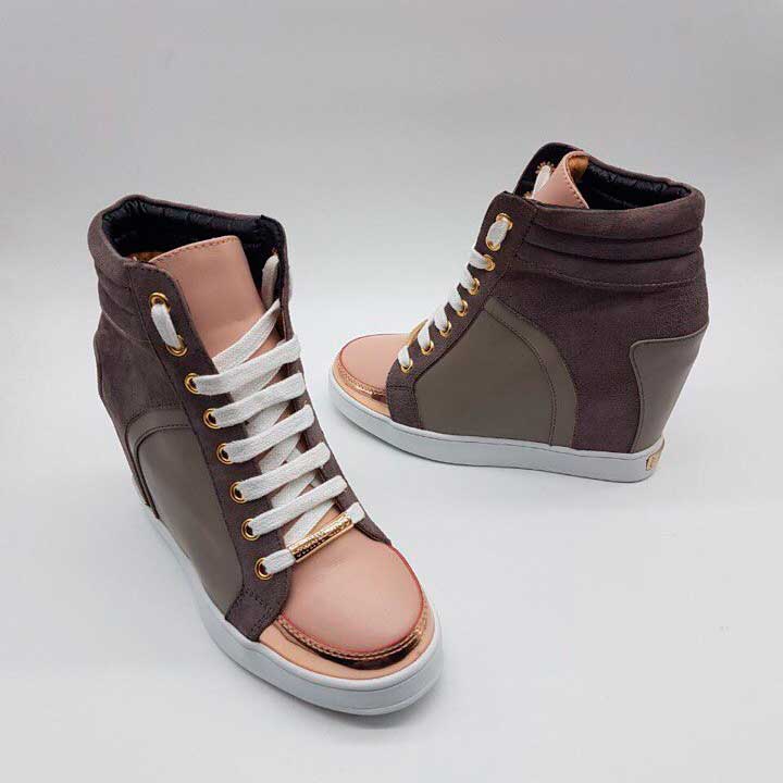 Высота платформы также варьируется. Верх (кроссовок) бывает низким, высоким как у ботинка. Чаще всего в моделях встречается шнуровка, липучки, застежки явно спортивного стиля. Материал для изготовления также играет роль – кожа, искусственные заменители кожи, текстиль, спортивные ткани и т.д. В качестве декора можно встретить на кроссовках с платформой цветные шнурки, полосы, лейбл производителя, металлические декоративные детали, молнии и клепки.