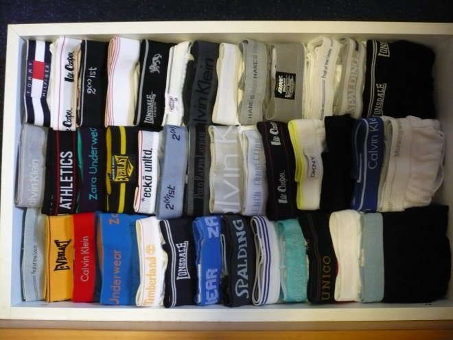 Еще один важный момент, который отмечают многие — трусы в обязательном порядке необходимо разложить по категориям. То есть боксеры идут к боксерам, плавки к плавкам, а «семейки» к «семейкам». Это позволит не допустить беспорядка в шкафу во время поиска белья. В таком случае будет просто подбирать нужную вещь под определенную ситуацию, гардероб и образ.