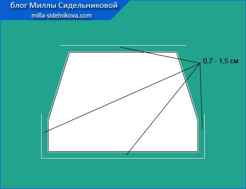 К вновь образовавшейся линии входа в карман добавляем 0,7 – 1,5 см припусков на выполнение соединительного шва.