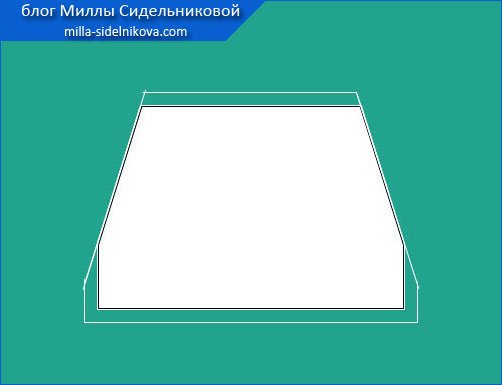 Каковы будут размеры отсекаемых в углах треугольников, вы, уважаемые любители шитья, тоже решаете сами. Единственное что можно посоветовать, так это то, что отсекаемые прямоугольные треугольники не должны быть равносторонними.