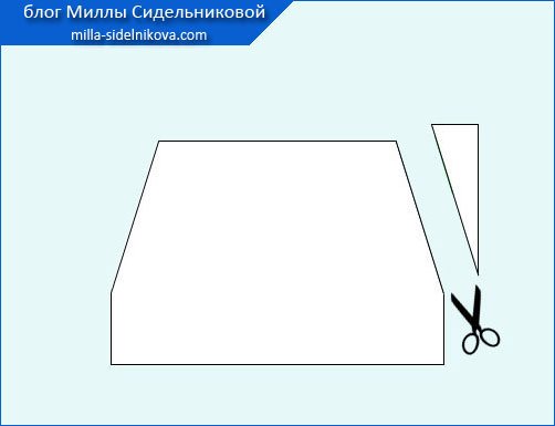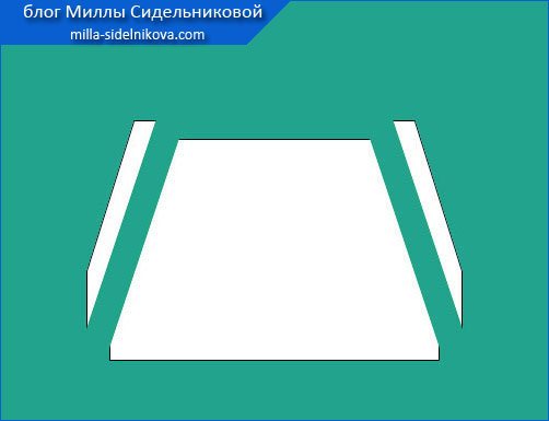 И когда с размерами основы для кармана – кенгуру «сложилось», выполняем скосы верхних углов прямоугольника, с обеих боковых сторон. Это будут входы в карман.