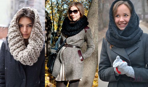 Если девушка носит пальто – выберите палантин, а под объемную куртку подойдет вязаный хомут.