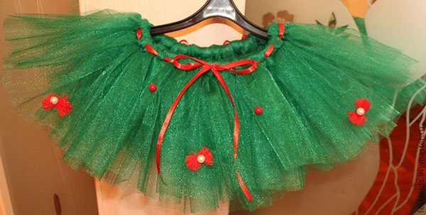 Такой не хитрый трюк позволит превратить любой костюм в елочку, останется добавить зелени на юбочку и украшение на голову.