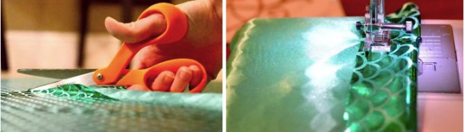 Для более реалистичного хвоста вам понадобится соответствующий материал: блестящая ткань с принтом в виде чешуи.