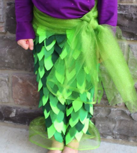В итоге у вас получится юбка-хвост. Из фатина вырежьте чешуйки и пришейте их с двух сторон.