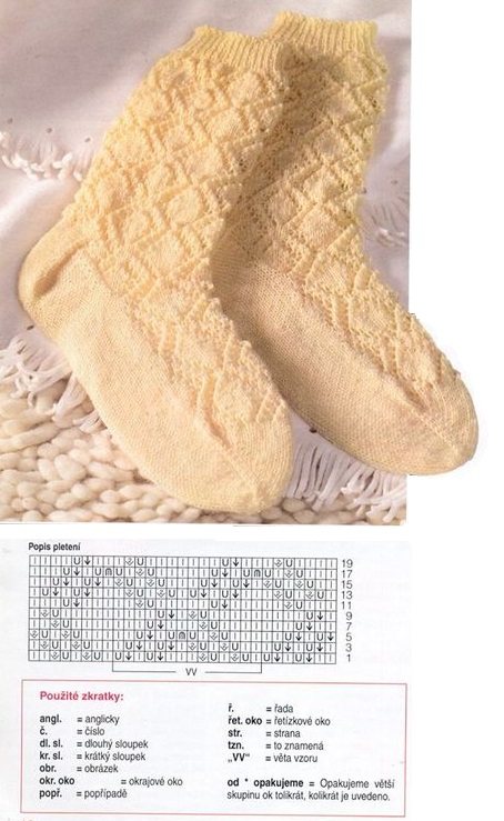 Ажурные красивые носки, пятка почти такая же. Идея вязания носков и схема узора.
