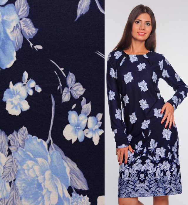 Прекрасно подходит для пошива осенних или зимних платьев, так как практически не истирается и является плотным и теплым. Имея в составе полиэстер или его смесь с вискозой, практически не мнется и остается в форме.