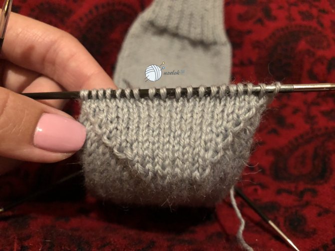 Пятку для правого носка начинаем с лицевого ряда. Для левого — с изнаночного.