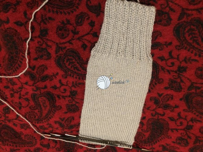 Благодаря кромочным петлям, которые мы вязали на укрепленной пятке, с двух сторон образовались косички. С помощью них будем поднимать петли. Если вы не знаете, как это делать, то посмотрите видео.