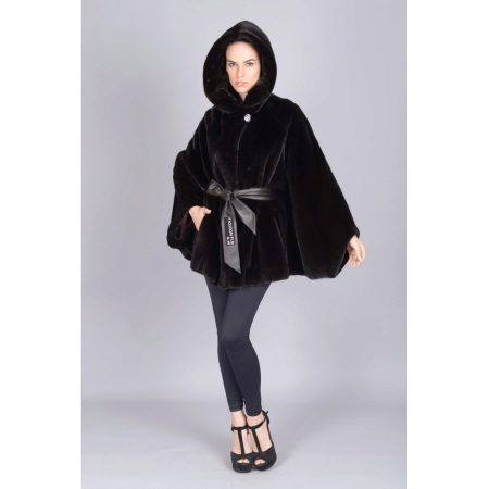 Модели летучая мышь имеют свободный и широкий крой, чтобы подчеркнуть красоту женского силуэта рекомендуется выбирать варианты с поясами. Шуба с капюшоном и поясом защитит от холода в любую погоду, а ее обладательница будет выглядеть роскошно и привлекательно, как на фото: