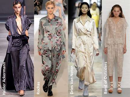 - самое главное – выбор ткани для пошива платья, костюма или любого другого изделия. Она должна быть натуральной и высококачественной, мягкой и струящейся. Пижамный модный стиль должен ассоциироваться с комфортом, элегантностью и роскошью одновременно, поэтому материал для него имеет решающее значение. По этой причине для создания подобных предметов гардероба в большинстве случаев выбирают шелк, сатин, атлас, поплин или же натуральный хлопок с добавлением минимального количества синтетического сырья;