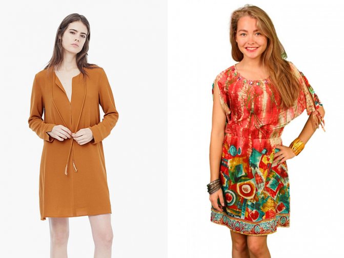 Платье-туника не создает препятствий при движении и хорошо скрывает любые недостатки фигуры. При помощи прямого силуэта можно легко уравновесить широкие плечи или тяжелые бедра. Для полных женщин рекомендуется выбирать модели из струящихся тканей. Они хорошо сглаживают очертания и зрительно облегчают фигуру. Невыразительную талию обозначают узким ремешком.