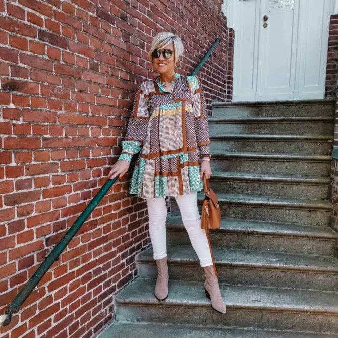 В тренде будут и спокойные цвета — светло-коричневый, пепельный розовый, бежевый. Это самые популярные цвета модных туник для женщин 50 лет, которые хотят подчеркнуть свою элегантность и сдержанность.