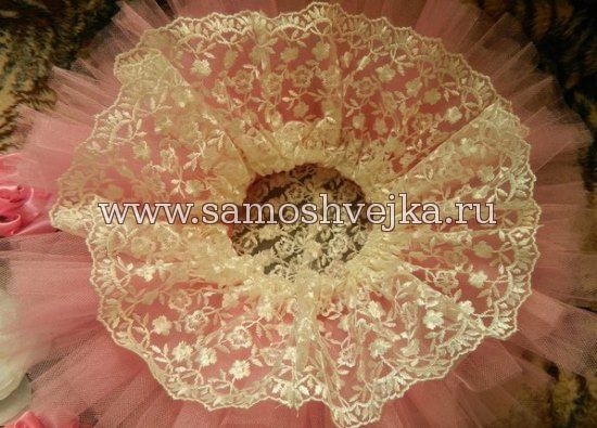 - К нижнему краю подола пришивается тесьма или сложенная лента фатина.