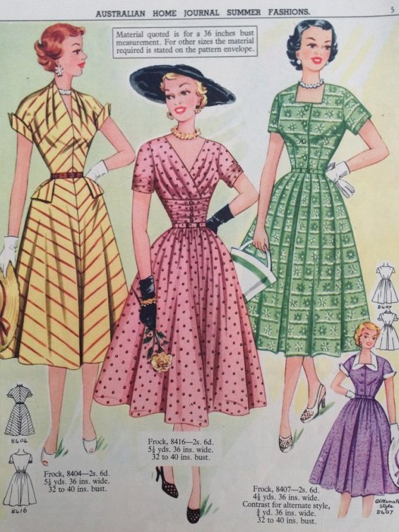 После войны содержание женского гардероба сильно изменилось. Появились множественные заимствования у мужской половины: военная стилистика, грубость фасонов, блёклые расцветки. Те времена позади, и уже в 50-ые годы с налаживанием экономической и политической обстановки изменились и взгляды на женские нужды. Появилась потребность ухаживать за собой, придавать большое значение своему внешнему облику.