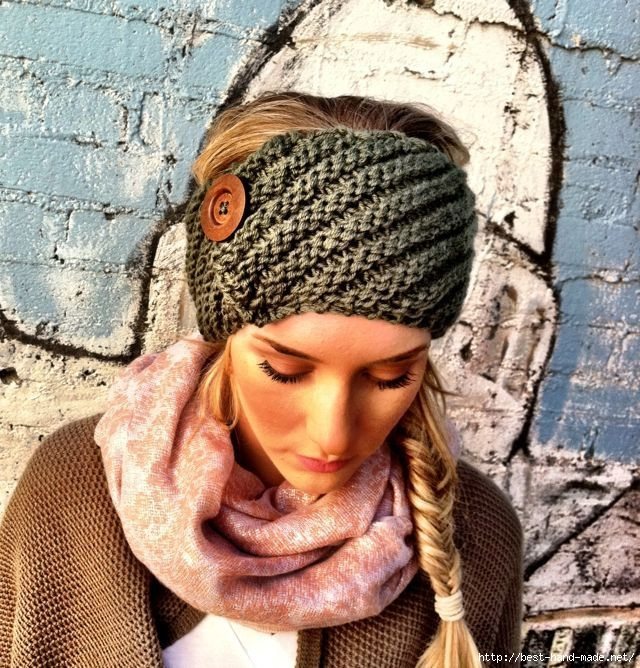 Ваш вязаный кардиган или пуловер освежит образ головного убора в том же стиле и похожей цветовой гамме. Вязаную повязку часто носят с подходящим шарфом, митенками или варежками. Такая композиция пользуется популярностью среди молодых девушек. Это озорной и оригинальный лук.