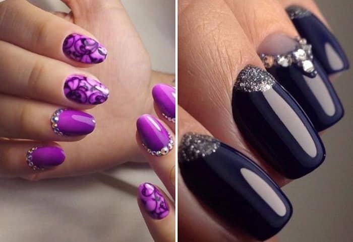 Холодный оттенок фиолетового идеально подойдет для зеленого платья с аналогичными нотками в цвете. С темными зелеными платьями можно выбирать более смелые и яркие варианты фиолетового. Выбор тона напрямую зависит от мероприятия, к которому подбирается маникюр.