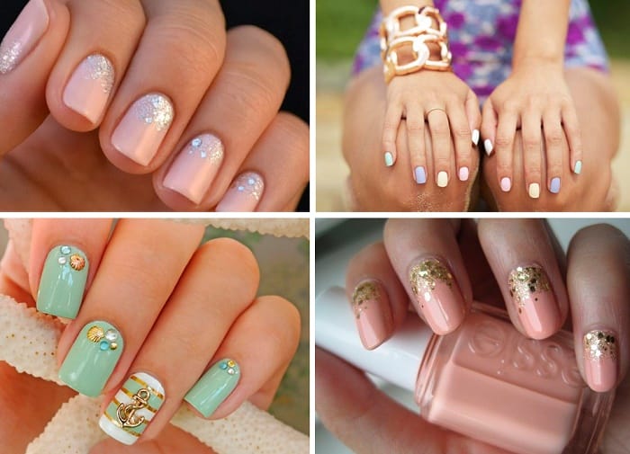 При выборе дизайна ноготков вспомним про природные краски и их сочетание. Светлый оттенок зеленого с насыщенным красным напомнит божью коровку в весенней траве, а маникюр в теплых тонах плюс цвет морской волны навеет мечты о закате на море.