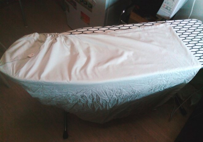 Крупные предметы, например, пододеяльники и простыни лучше размещать на столе. Если вы пользуетесь гладильной доской, то обязательно следите, чтобы ткань не касалась пола и не пачкалась. Для этого можно, например, постелить подстилку или клеенку.
