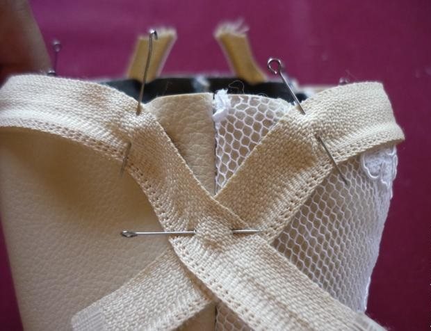 Закрепление специальной ленточки из плотной ткани для будущей фиксации замка
