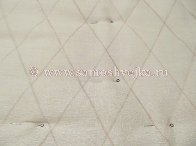 Полученную заготовку сколите или укрепите намёточным швом. С изнаночной стороны при помощи линейки отложите угол 60 0 и проведите карандашом линии, чтобы получились ромбики.