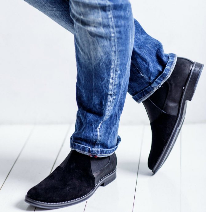 Мужские ботинки «челси» можно носить как с классическими брюками, так и с джинсами. Но в любом случае они не должны быть слишком широкими, лучше выбрать слегка зауженные (но не облегающие по всей длине).