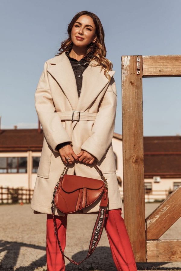 Бежевое пальто вовсе необязательно может быть основой монохромного аутфита. Это универсальный цвет верхней одежды, который легко сочетается с различными цветами. Подберите в пару к бежевому пальто коричневую сумку и дополняйте это сочетание различными вариантами верха и низа. Например, выигрышным решением будет светлый джемпер в тандеме с голубыми джинсами и белыми кроссовками. Стильно и практично!